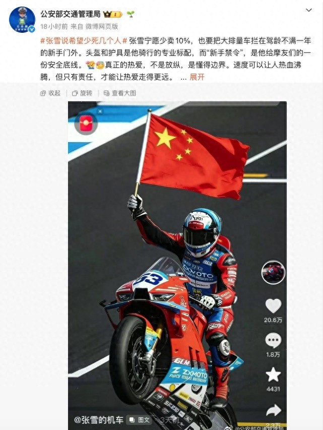 凯发娱乐(K8)官方网站 公安部力挺张雪! 拦阻生手购买820RR, 安全重于销量