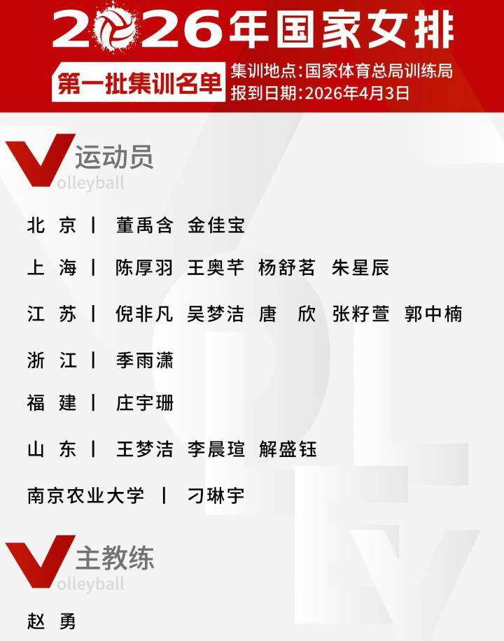 北京时刻4月2日的下昼,中国女排超等联赛总决赛为止以后,只是夙昔了一天,中国排协就在第一时刻公布了2026年中国女排第一批17东说念主的集训名单,咱们先一睹为快。主攻位置为吴梦洁、庄宇珊、董禹含、李晨萱和季雨潇5东说念主,副攻位置为陈厚羽、王奥芊、郭中楠、金佳宝4东说念主,策应位置唐欣、杨舒茗2东说念主,二传位置刁琳宇、张籽萱、解盛钰3东说念主,解放东说念主位置王梦洁、倪超过、朱星辰3东说念主。不丢脸出,江苏和上海入选的球员是最多的,也曾升迁了一半东说念主数。